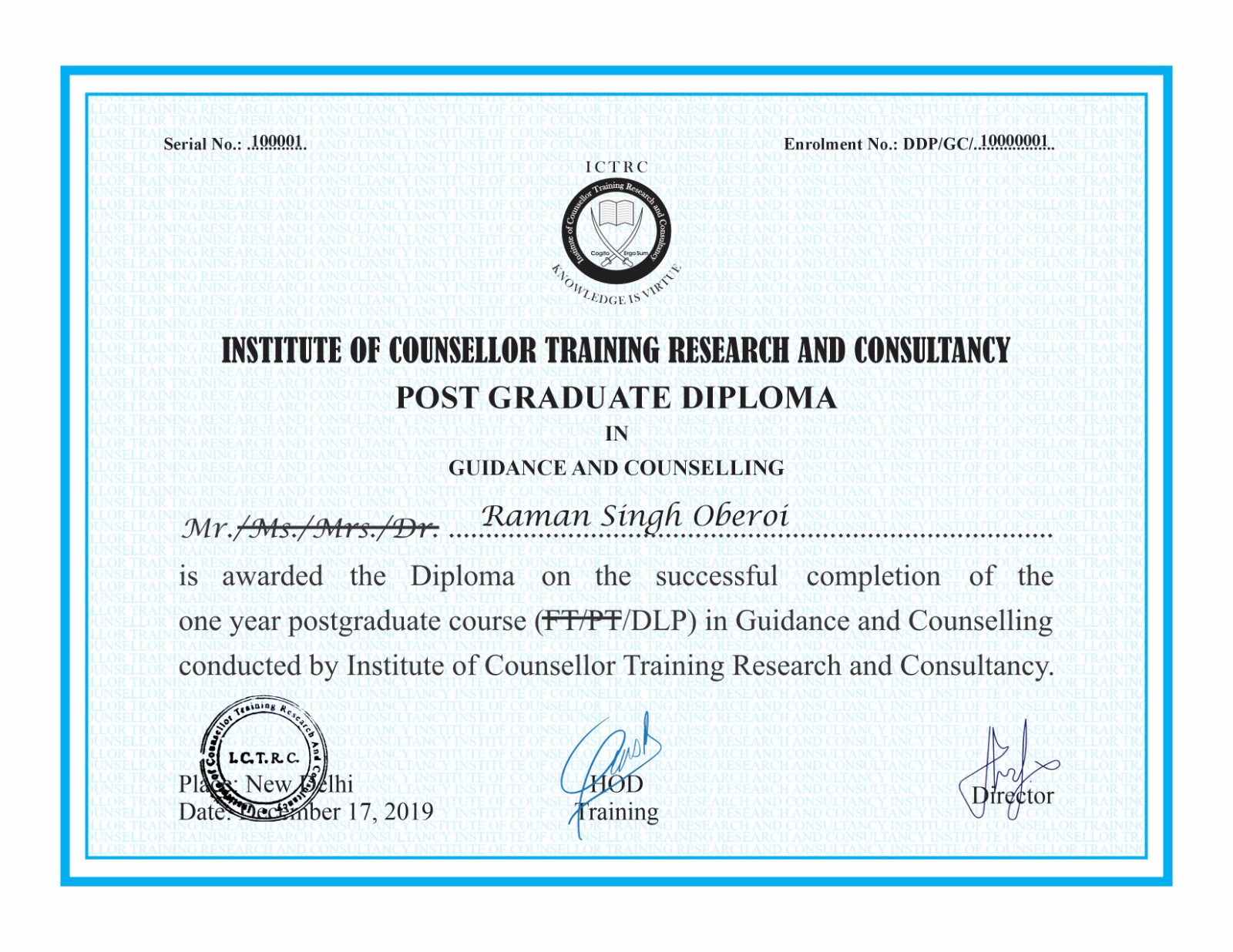 Institute of Counsellor Training Research and Consultancy (ICTRC) was established in the year 1992 to work in the area of mental health. The core group of ICTRC comprises practicing psychologists, and educators.